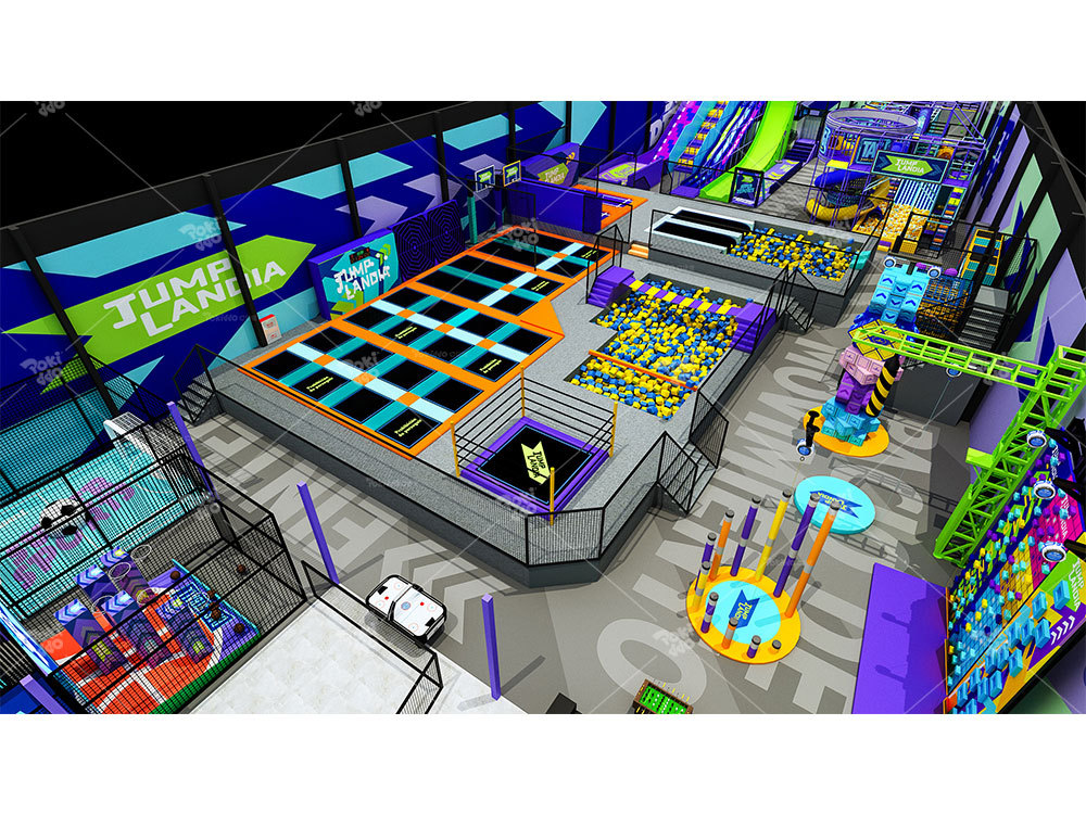 JUMP LANDIA Sports Park has a variety of sports and entertainment projects, including trampolines, sponge pools, swing bridges, artistic rock climbing, sky step, courage jump towers, crazy slide, donut slide, wave slides, and zip lines; there are also digital sports projects such as interactive basketball, action crossing, and football goalkeeper; a large three-level sports competition TAG ARENA; and a cool fluorescent laser CS.