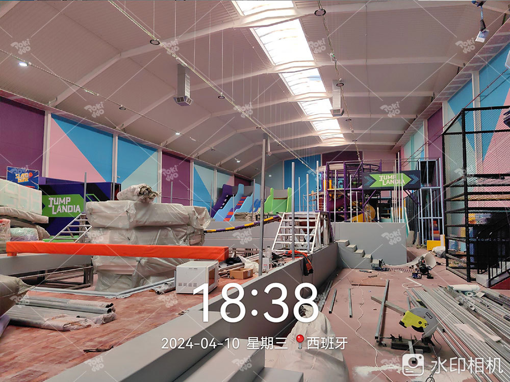 Equipment installation and construction is one of the important links in project delivery. Pocket House dispatched professional installers to Spain to carry out the final construction of the venue. During the installation process, the equipment installation team strictly followed the industry safety standards and efficiently advanced the task plan every day to ensure the high-quality delivery of the project. When the project was about to be completed and delivered, the chief experience officer, "Pokiddo founder - Mr. Bao", also flew to Spain in person to conduct project acceptance and strictly control the details. Everything is to ensure the product quality and play safety of the sports park.