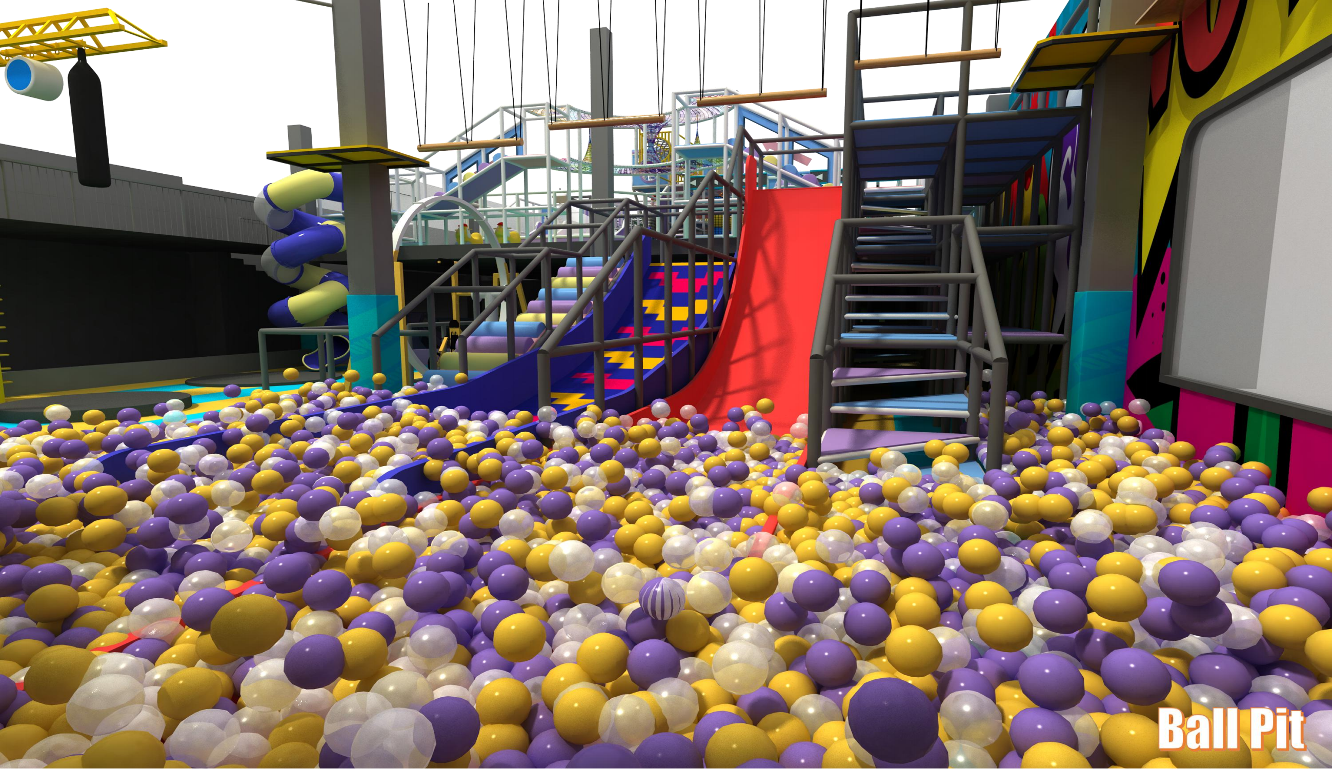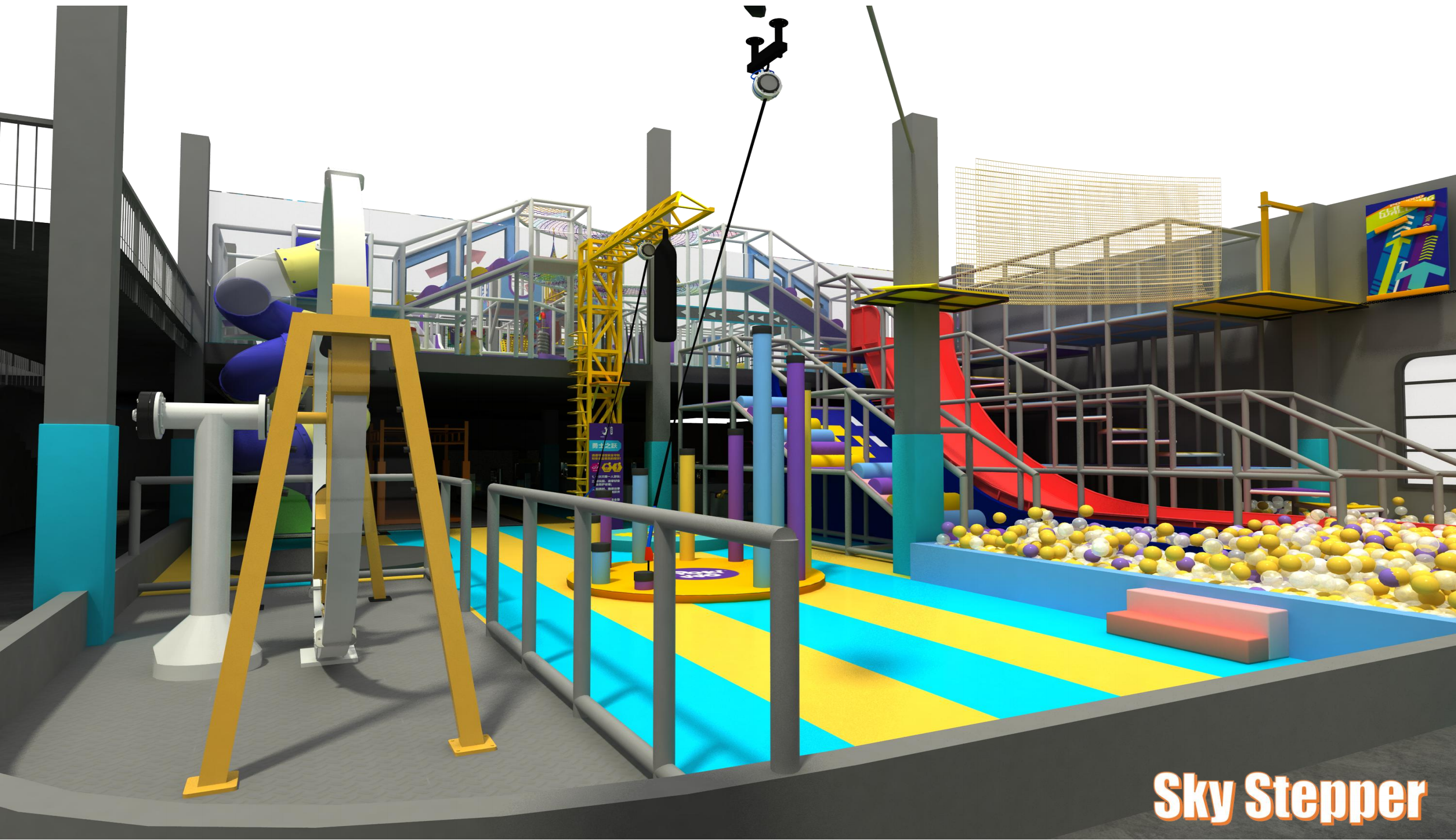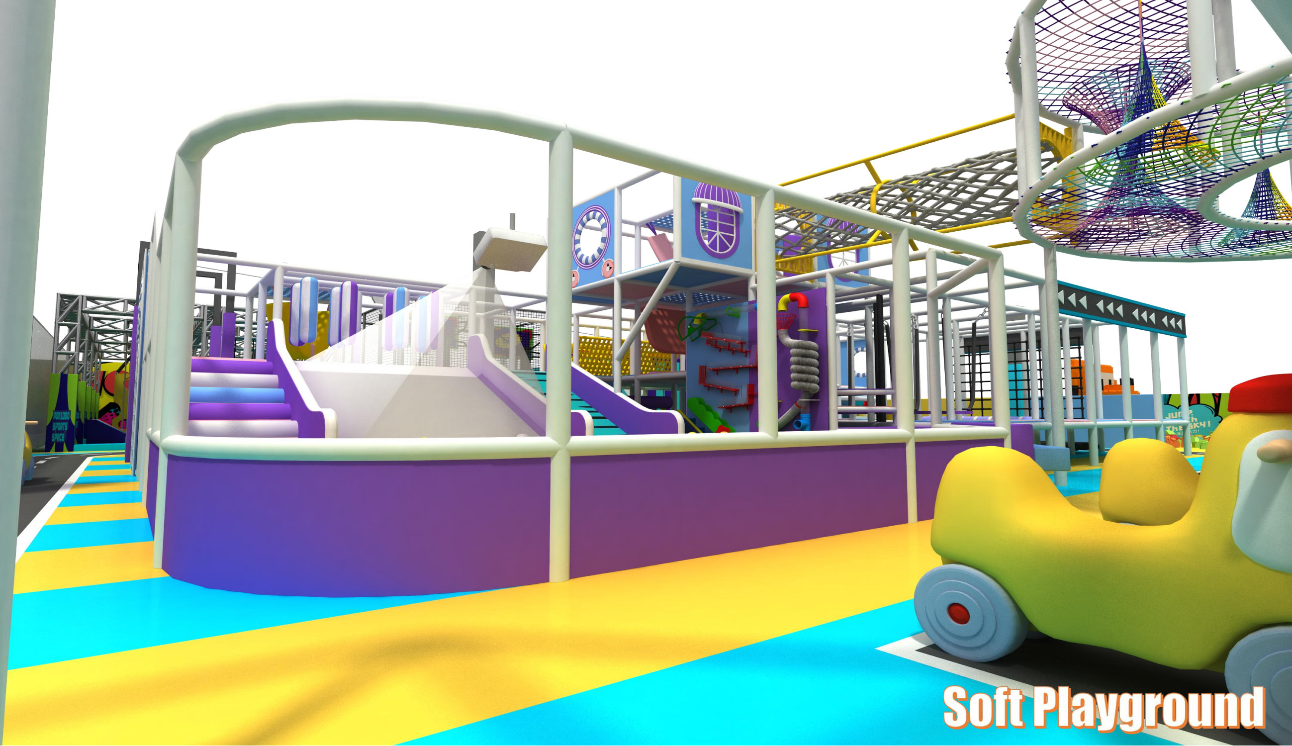 30+ Attractions: Soft Playground, Inflatable Football, Basketball Arcade Game, Spiral Slide, Rolling Game, Rainbow Net, Kids car way, Merry-go- round, Custom Theme Soft Playground, Maze Game Triple, Slide with Interactive Projector, Role Play House, Zipline, Ninja Course, Monkey Bar, Battle Beam & Foam Pit, Climbing Wall, Free Trampoline, Slam Dunk, Interactive Basketball, Freestyle Duo, Art Climbing, 360 Bike, Donut Slide, Crazy Slide, Jump Tower, Sky Stepper, Ball Pit, Rope Course, Party Rooms, Claw Machines