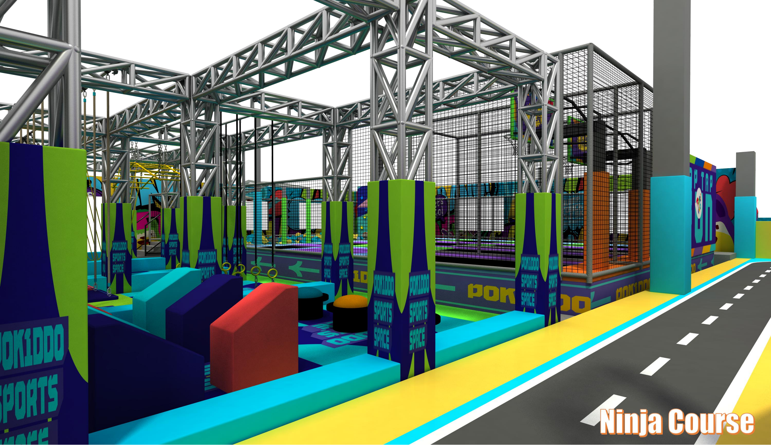 Pokiddo, commercial indoor playground, indoor playground manufacturer, indoor playground factory, trampoline park manufacturer, trampoline park factory, ninja course, slides, one-stop solution